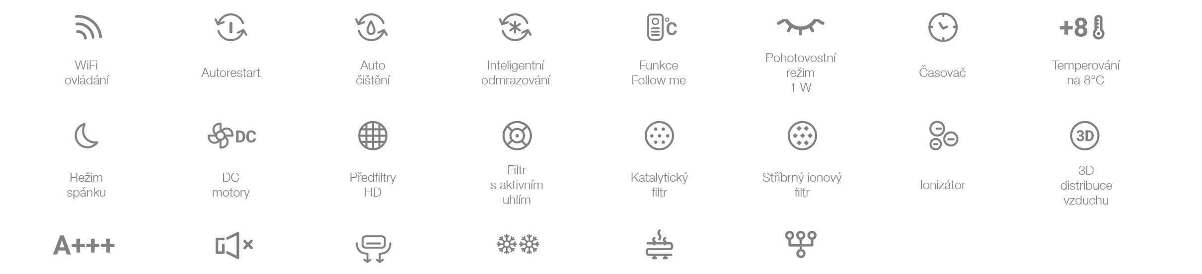Hyundai Carbon Grey je kvalitní klimatizace, která zaujme nejen moderním designem. Topí až do -25 °C a co se týče výbavy, patří mezi ty vůbec nejvybavenější. Disponuje zabudovaným WiFi modulem, ionizátorem, tichým režimem, výhřevem venkovní jednotky a funkcí temperování na 8°C.