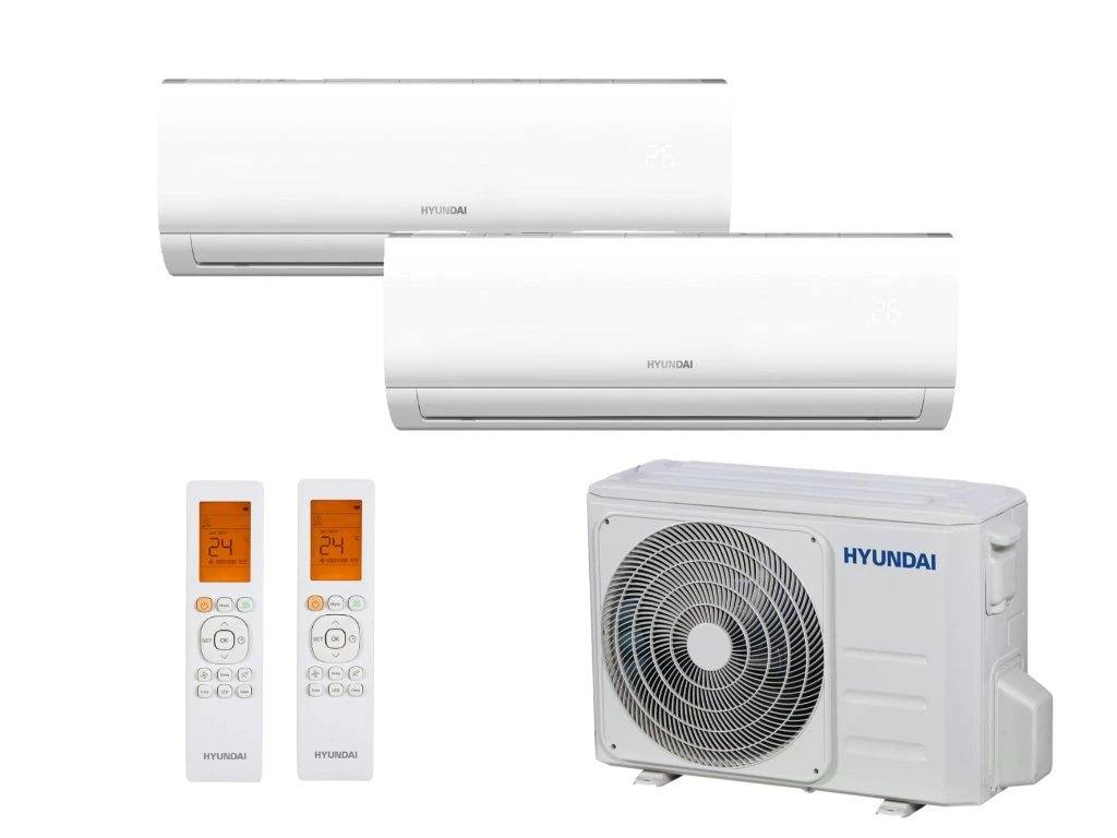 Hotová multisplitová sestava s montáží v ceně. Sestava obsahuje 2x vnitřní klimatizaci Hyundai Revolution 2,6 kW a 1x venkovní jednotku. Vnitřní jednotky jsou vybaveny WiFi modulem pro vzdálené ovládání a funkcí temperace. Tato sestava je vhodná i pro vytápění.