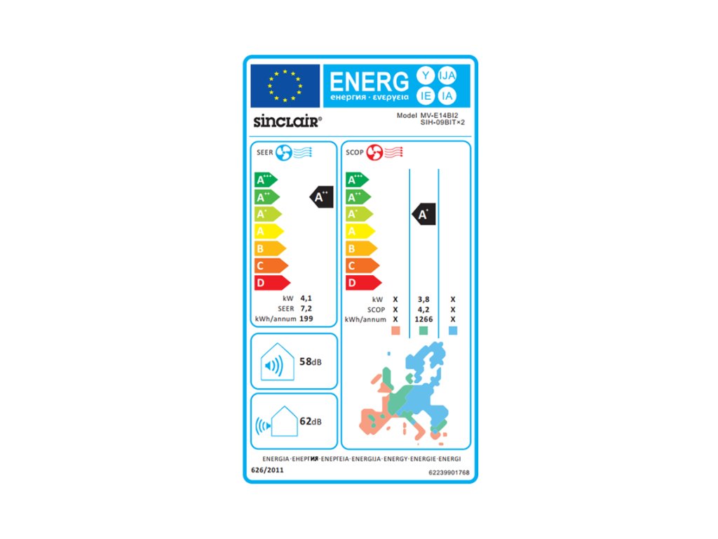 | Energetická třída | Chlazení / topení | A++ / A+ | - |